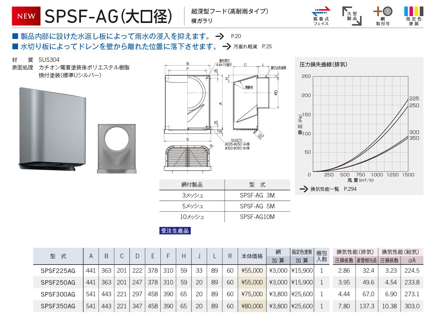 | SPSF300AG | ¥80,000 | ¥25,600 | 7.80 | 137.3 | 10.38 | 303.0 | 350 |